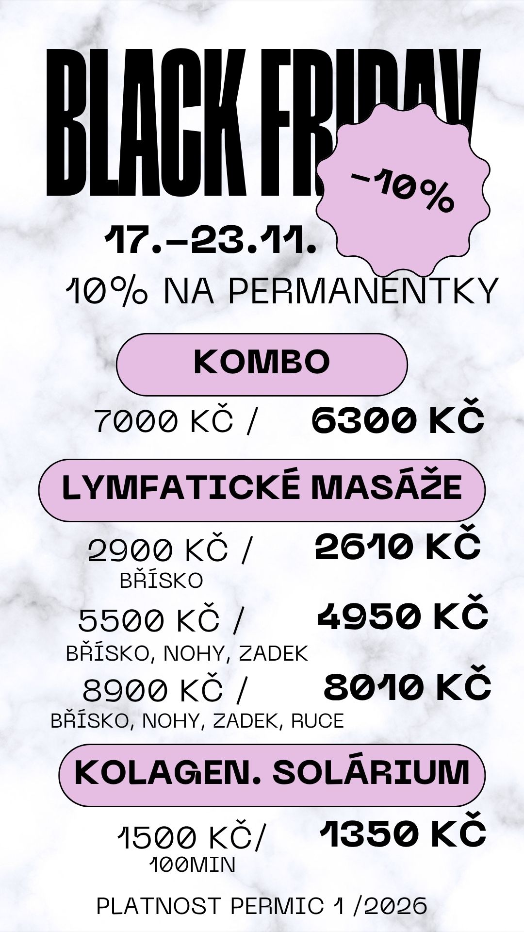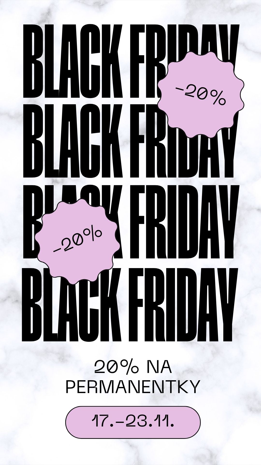 Sleva 20 % na permanentky, které můžete navštívit v týdnu od 17.-23.11. Platnost permantek je do konce ledna. Tato sleva se neopakuje, je pouze jednou ročně tak toho využij!
